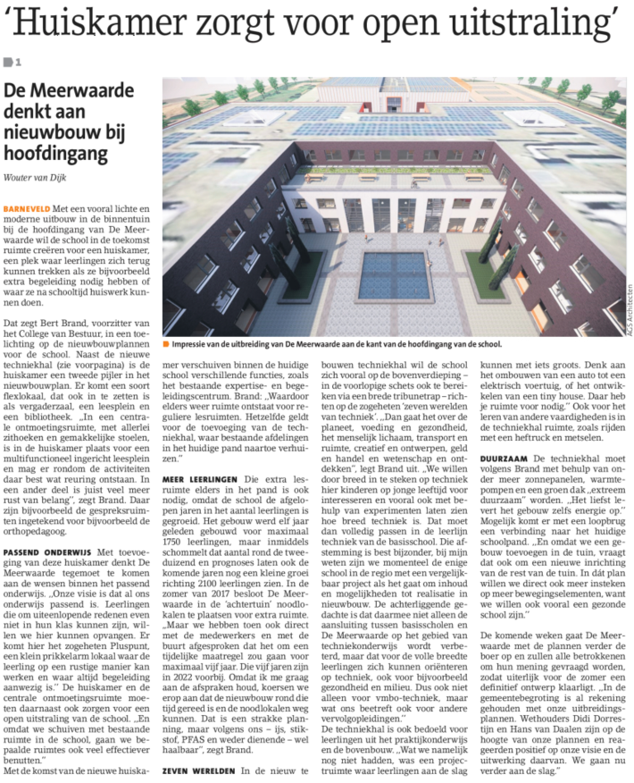 In november 2019 berichtten we over onze huisvestingsplannen in de Barneveldse krant: