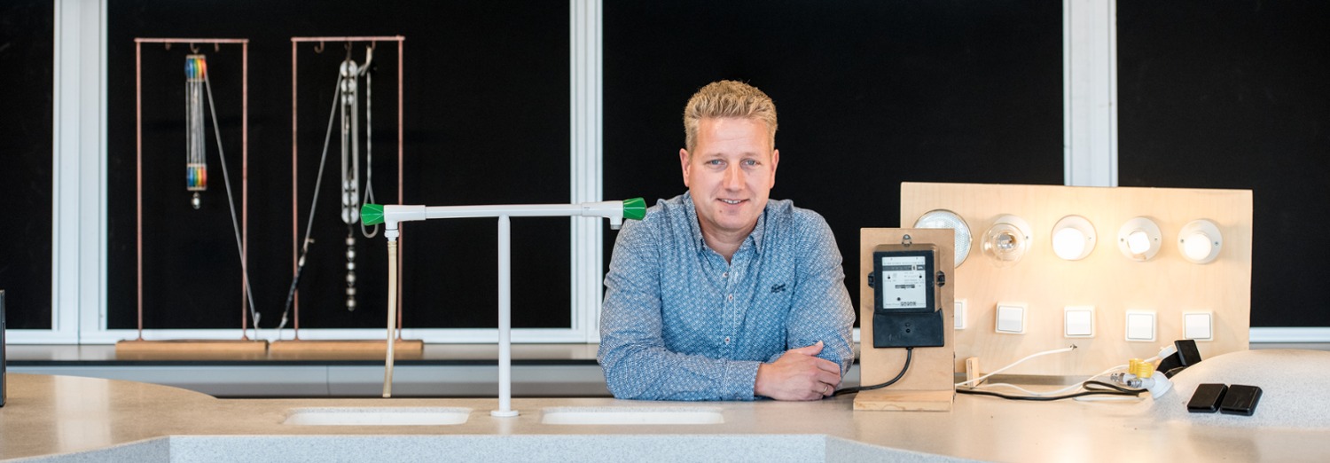 ‘Ik ben binnen PIE en M&T docent Natuurkunde. Dit is een avo-vak en dus is het verplicht voor alle leerlingen. Binnen natuurkunde gaan we dieper in op onderwerpen als energie, kracht, druk en snelheid, stoffen, licht en elektriciteit. Hoe belangrijk is licht voor ons? En wat kunnen we ermee om het milieu te verbeteren? Dit zijn hele interessante thema’s binnen het vak. En toch ook praktisch, want aan bijna elk onderwerp kun je een experiment of praktisch voorbeeld koppelen. De echte praktijkopdrachten krijgen de jongeren op de werkvloer bij PIE of M&T.’